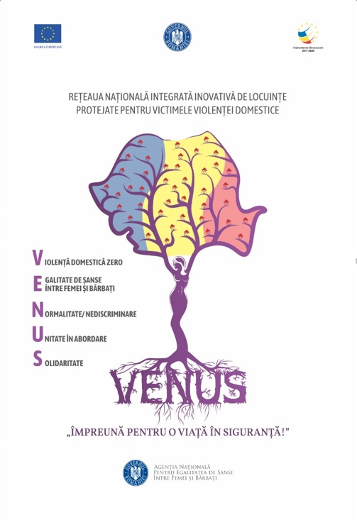 Proiectul „VENUS – Împreună pentru o viață în siguranță!”, cofinanțat din FSE, Programul Operaţional Capital Uman (POCU) 2014-2020, Axa Prioritară 4: Incluziunea socială și combaterea sărăciei, Obiectiv Specific 4.4: Reducerea numărului de persoane aparținând grupurilor vulnerabile prin furnizarea unor servicii sociale/medicale/socio-profesionale/de formare profesională adecvate nevoilor specifice. Proiectul are ca obiectiv general îmbunătățirea și dezvoltarea măsurilor și serviciilor sociale în scopul prevenirii și combaterii violenței domestice la nivel național prin crearea și dezvoltarea unei rețele naționale inovative integrate de locuințe protejate, grupuri de suport și consiliere vocațională, în scopul implementării unui program național de protecție a victimelor violenței domestice și derularea unor campanii privind prevenirea și combaterea violenței domestice.
