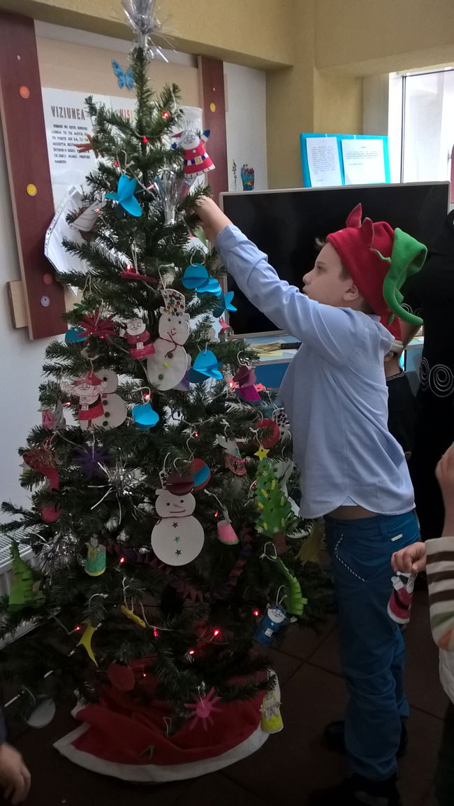 Copiii din cadrul Complexului de servicii sociale “Casa Soarelui” Târgoviște au împodobit bradul cu decorațiuni realizate chiar de ei