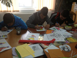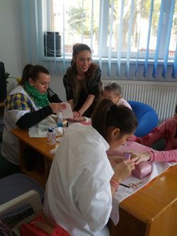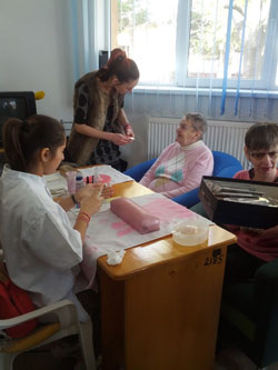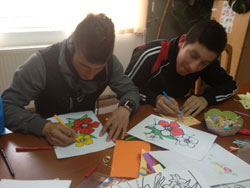 Sub îndrumarea salariaților, beneficiarii din cadrul Complexului de Servicii Sociale "Floare de Colț" Târgoviște, confecționează felicitări și diferite obiecte pe care le vor dărui cu ocazia sărbătorilor de Paște.
