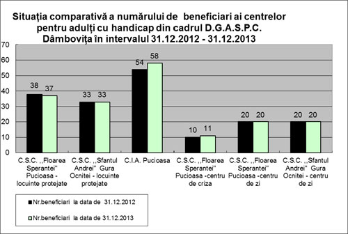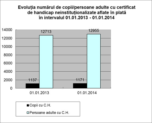 - Serviciul evaluare complexă pentru adulți are în evidență 14276 dosare pentru persoane cu dizabilități și a evaluat în anul 2013, la sediul instituției 5214 dosare, din care 1476 dosare noi, și 364 persoane nedeplasabile au fost evaluate la domiciliu.