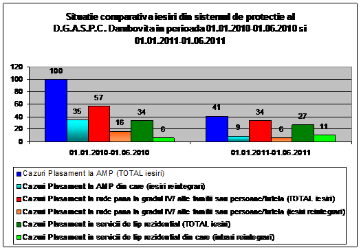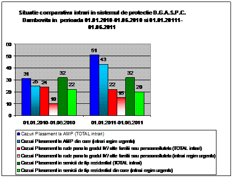 Situatie comparativa Intrari –Iesiri in/din sistemul D.G.A.S.P.C. Dambovita in perioada 01.01.2010-01.06.2010 si 01.01.2011-01.06.2011