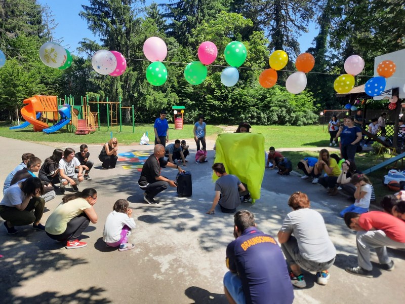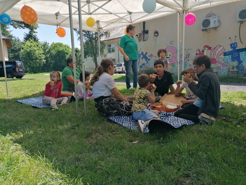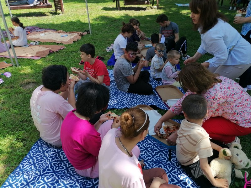 Petrecerea a fost găzduită de Complexul de Servicii Sociale Găești și s-a desfășurat sub forma unui picnic, cu pizza, prăjituri și sucuri, cu picturi pe față, desene pe asfalt, jocuri interactive, discuții amicale, multe baloane colorate și personaje de poveste. Micuții cu dizabilități s-au bucurat cel mai mult de momentele magice și i-au răsplătit pe cei din jur cu zâmbete și îmbrățișări, iar adolescenții au socializat și s-au relaxat în cadul natural și primitor.