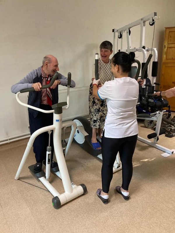 Orele de kinetoterapie nu sunt o povară pentru ei, ci s-au transformat în clipe de recreere, în momente de socializare, învăluite de zâmbete largi, atât ale beneficiarilor, cât și ale personalului de îngrijire. Lucrează intens pentru a-și îmbunătăți mobilitatea sau pentru a o păstra cât mai mult timp și nu se dau înapoi de la glume, povestesc momente amuzante din viața lor, atât cât își amintesc, și spun bancuri.