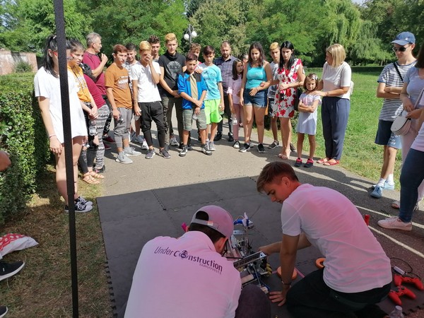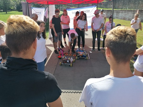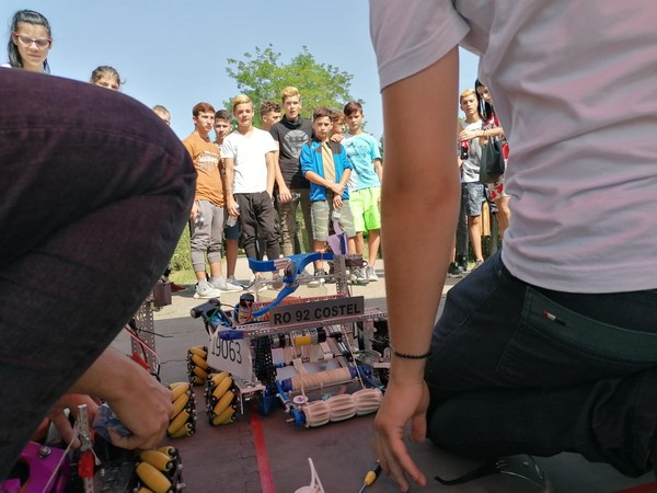 Adolescenții noștri au privit entuziasmați reprezentația luptătorilor de la Clubul Sportiv Școlar și au observat activitatea roboților construiți de echipa de liceeni care ne reprezintă la nivel internațional în domeniul roboticii. Curioși, au pus întrebări despre realizarea mașinăriilor.