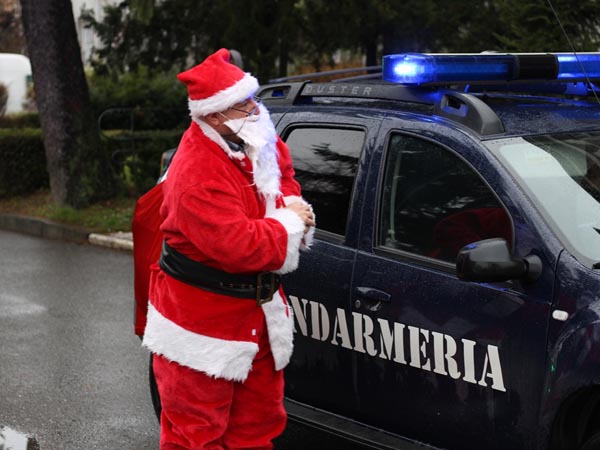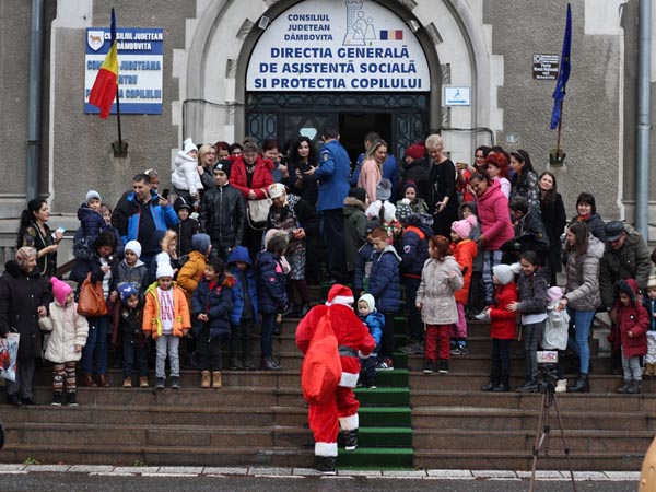 Moș Crăciun a înlocuit sania cu autoturismul cu girofar al Jandarmeriei Dâmbovița și a venit în data de 13 decembrie 2019 la sediul Direcției Generale de Asistență Socială și Protecția Copilului Dâmbovița, unde l-au așteptat 31 copii aflați în plasament familial.