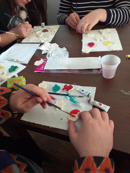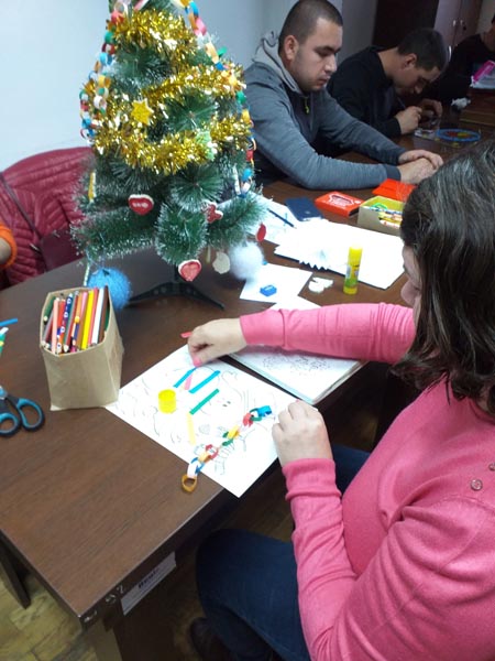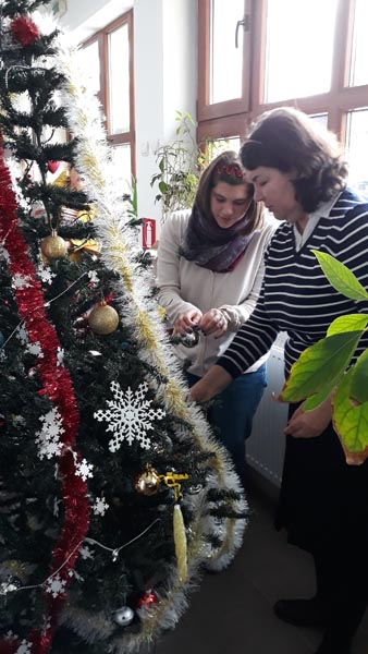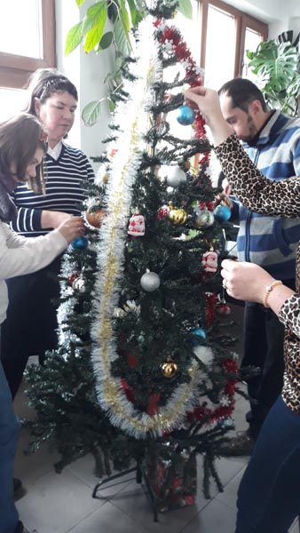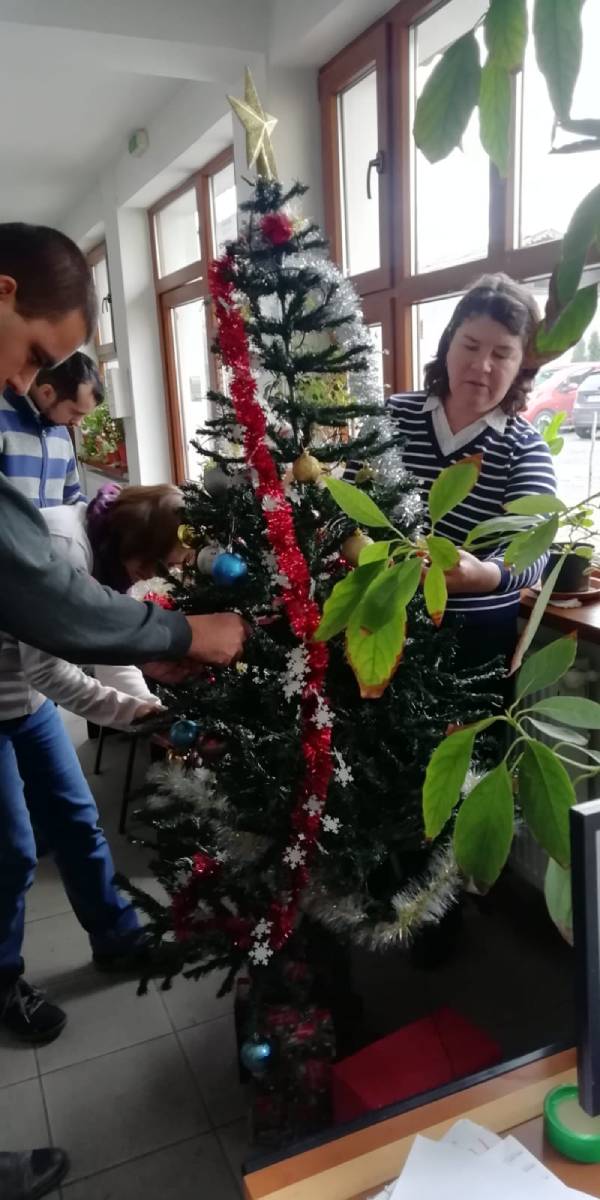 În perioada 02.12. - 13.12.2019, beneficiarii Centrului de consiliere și sprijin pentru integrarea socială a persoanelor cu boli psihice, împreună cu personalul de specialitate, au desfășurat activități specifice sărbătorilor de iarnă: au confecționat decorațiuni handmade de Crăciun și brăduți din hârtie, au pictat globulețe modelate din aluat, au împodobit bradul și au pictat pe sticlă diverse teme de iarnă. Beneficiarii au fost încântați de aceste activități care i-a apropiat treptat de atmosfera sărbătorilor de iarnă, în același timp reușind să-și îmbunătățească abilitățile de lucru în echipă, dexteritatea manuală și creativitatea.
