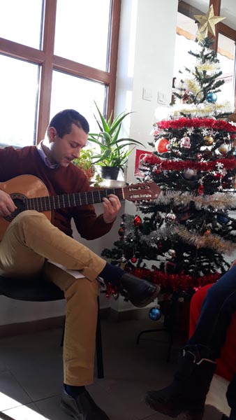 Câțiva dintre cei mai talentați angajați ai Direcției de Asistență Socială și Protecția Copilului au susținut un moment de suflet pentru colegii lor, dar și pentru beneficiarii prezenți la sediul instituției, în dimineața zilei de 18 decembrie. Aceștia au cântat colinde în holul instituției, lângă bradul luminos. Cântecele tradiționale, prin care este vestită Nașterea Domnului, au răsunat în toată clădirea și au completat tabloul de sărbători, început de familia DGASPC prin împodobirea bradului. Ceilalți angajați și-au susținut colegii prin aplauze și s-au alăturat acestora spre final, cântând la unison ultimul colind. În speranța că vă veți bucura de momentul artistic, susținut de colegii noștri, va urăm sărbători cu sănătate, bucurie și belșug!