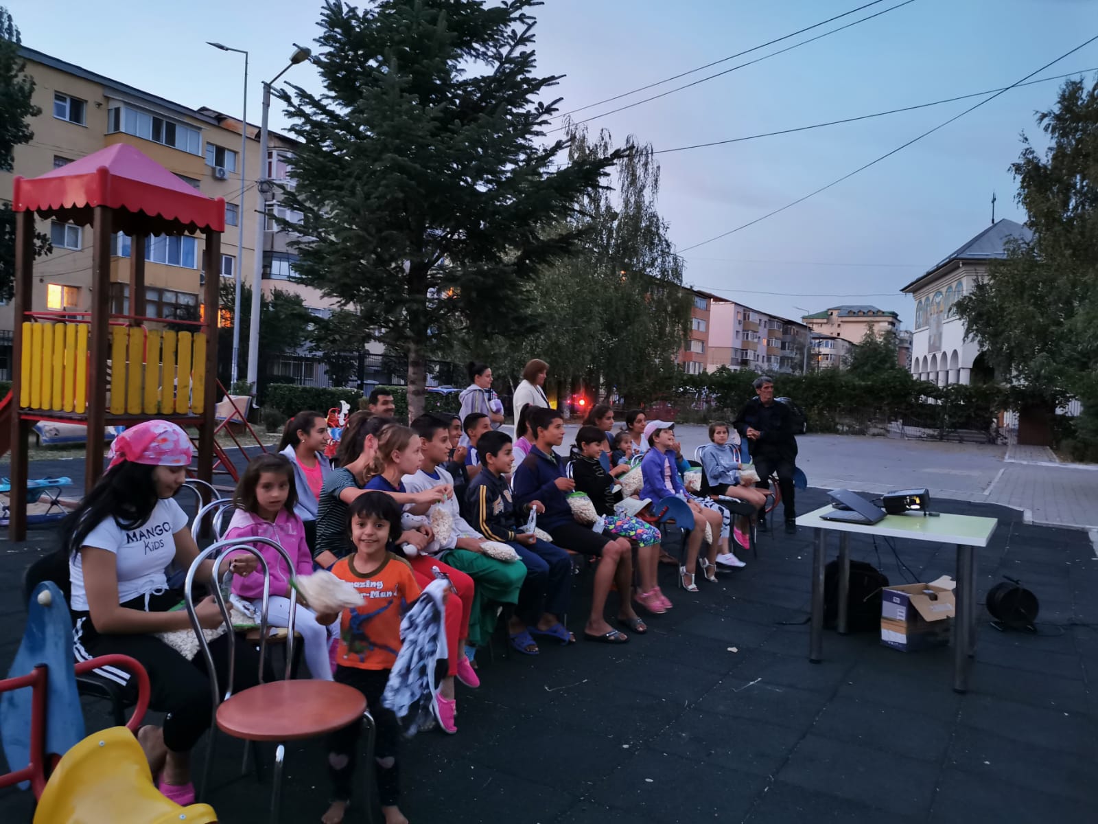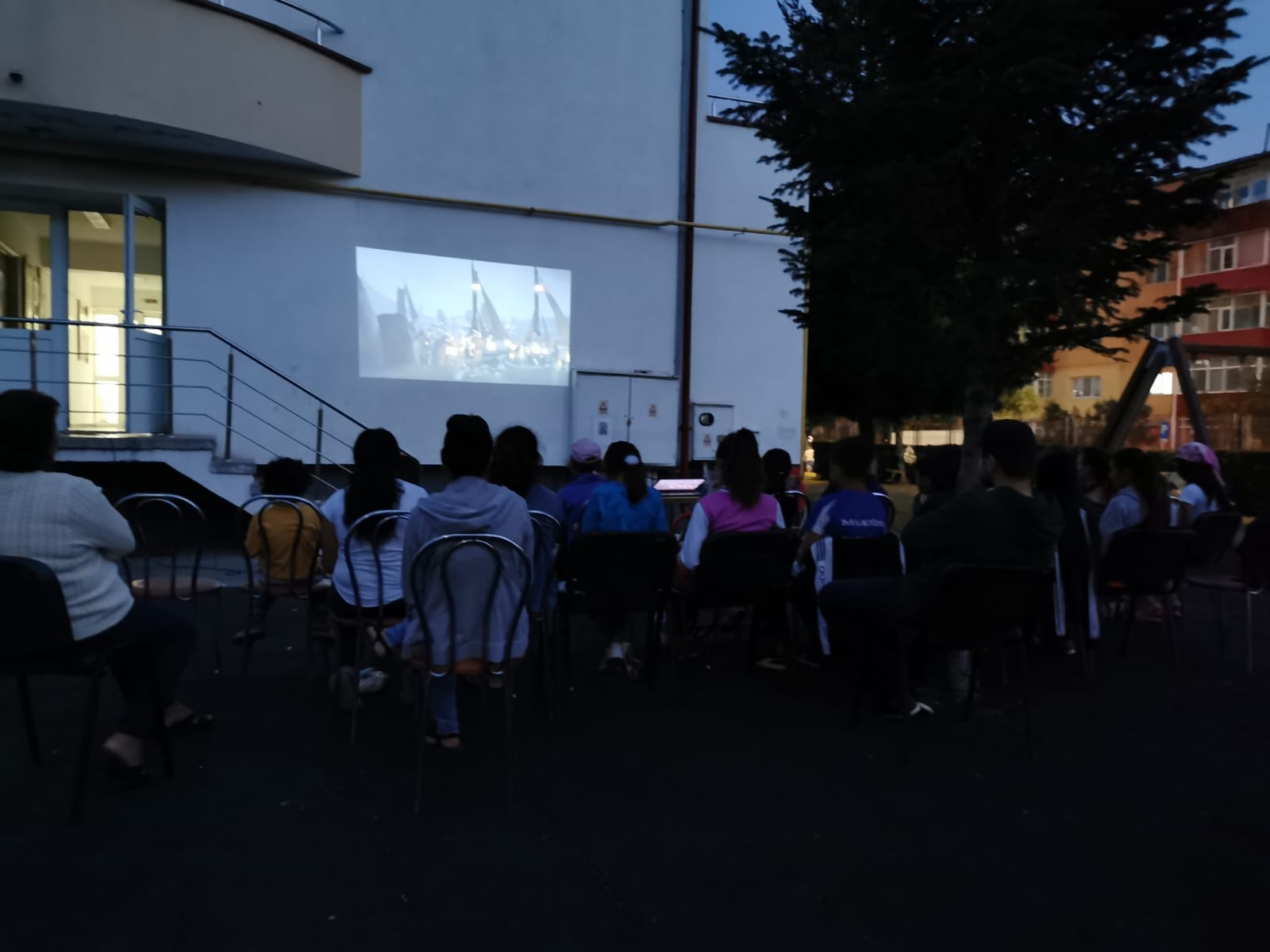 Cu această ocazie s-a desfășurat o activitate de socializare în aer liber însoțită de proiecția filmului “O poveste încâlcită” pe unul din pereții instituției.